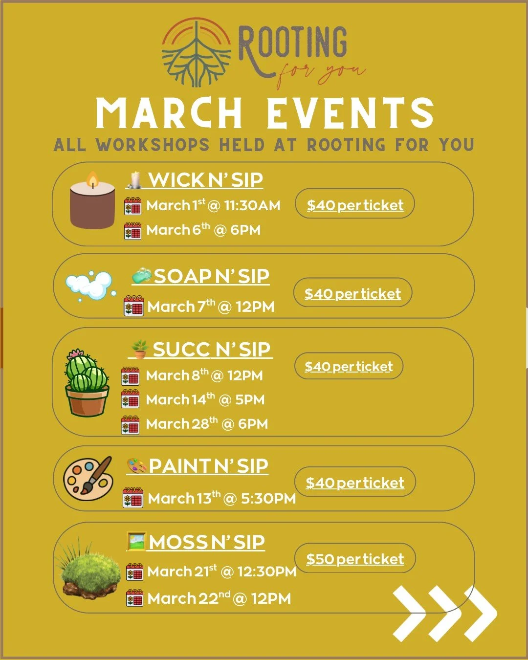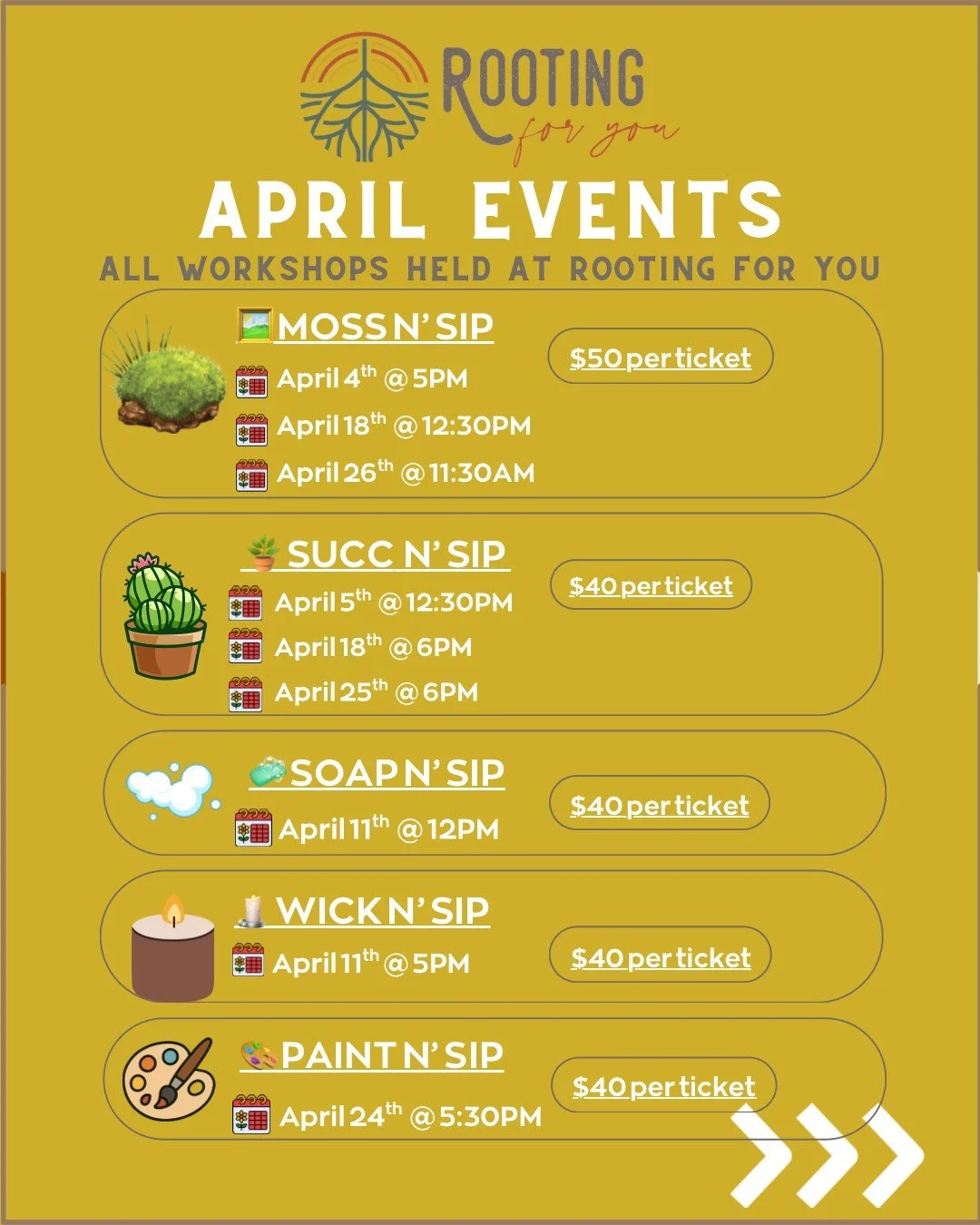Each guest personalizes their pot, then builds an arrangement that’s as unique as they are. Along the way, guests will be given easy care tips and succulent basics — so everyone leaves with a living piece of art (and the confidence to keep it thriving).